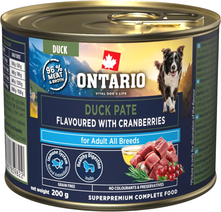 Válaszd az Ontario Adult kacsapástétomot áfonyával, és adj kutyádnak prémium táplálékot minden napra!