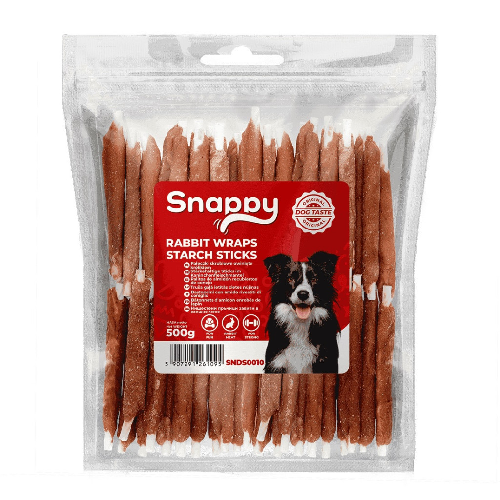 A Snappy Dog Snacks Pawsticks egy prémium minőségű csemege, amelyben az ízletes nyúlhús ropogós keményítőrudakkal párosul. Ez a hosszan tartó rágásélményt nyújtó jutalomfalat nemcsak leköti kedvencét, hanem természetes módon segíti a fogak tisztán tartását is. Az 500 grammos, gazdaságos kiszerelés (SNDS0010) ideális választás a mindennapi egészséges kényeztetéshez.