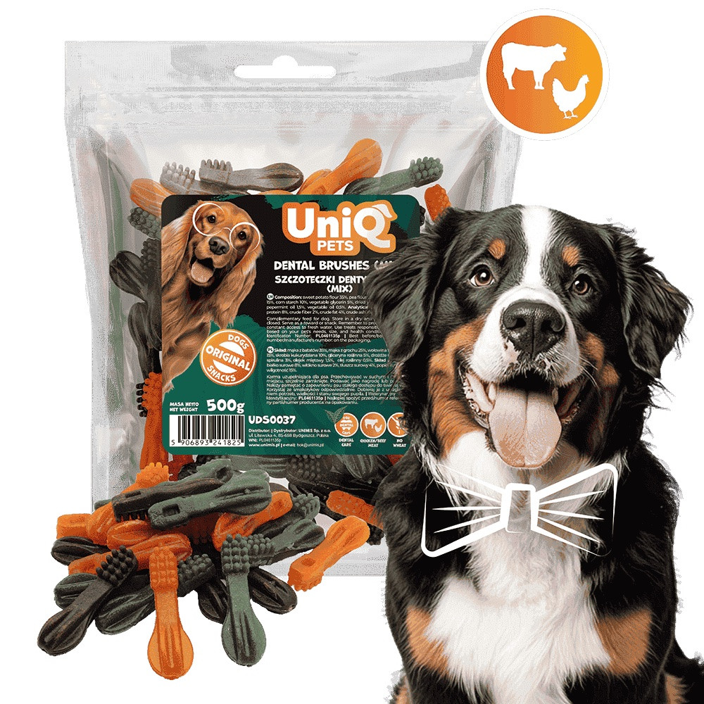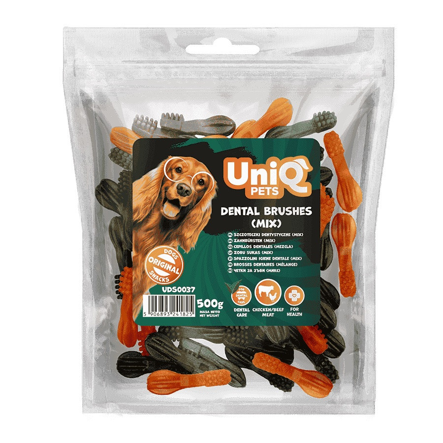 UNIQ PETS DOG SNACKS DENTAL – Dentális kutyajutalomfalat – rágókefe mix, 500g