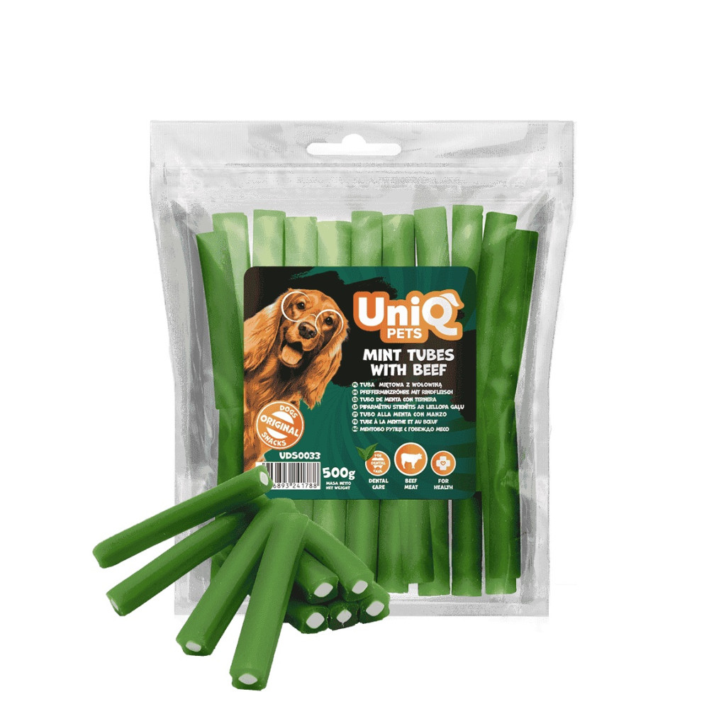 UNIQ PETS DOG SNACKS DENTAL – Marhahúsos Fogápoló Csövek (500g)