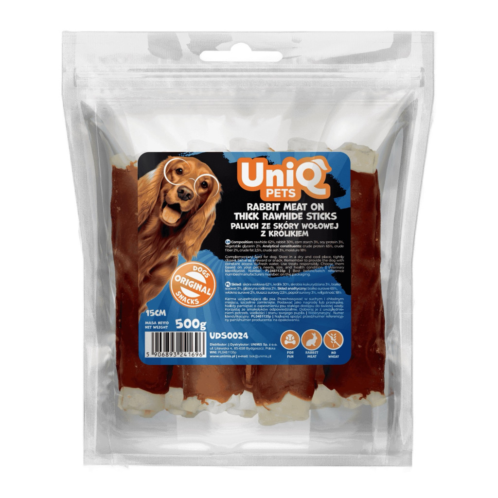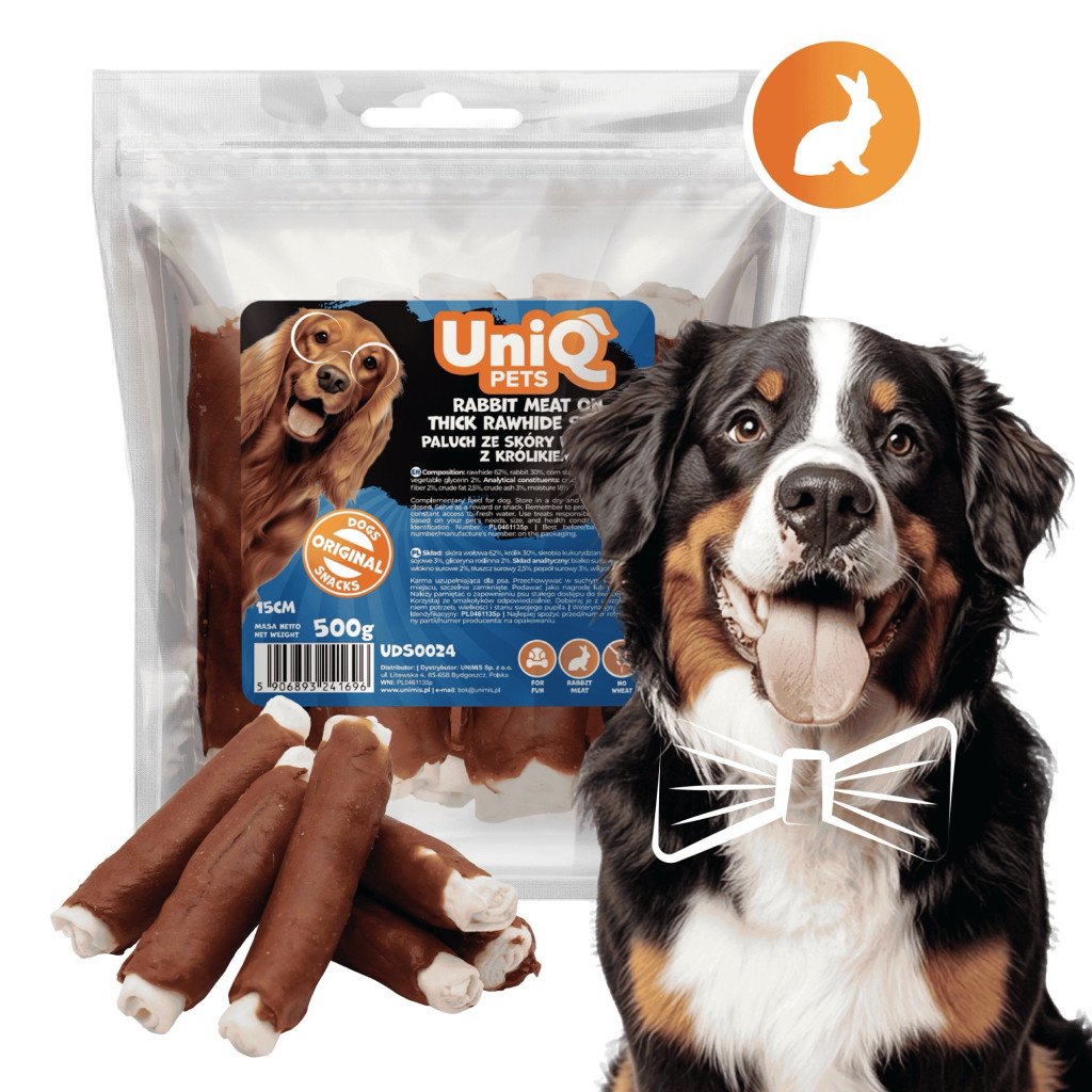 UNIQ PETS DOG SNACKS RAWHIDE – Nyúlhússal tekert vastag rágórudak (15 cm ) 500g