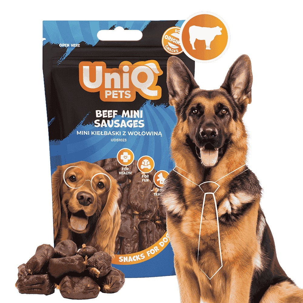 UNIQ PETS DOG SNACKS WAGGI – marhahúsos mini kolbászkák kutyáknak, 80g